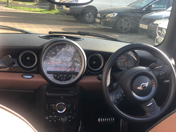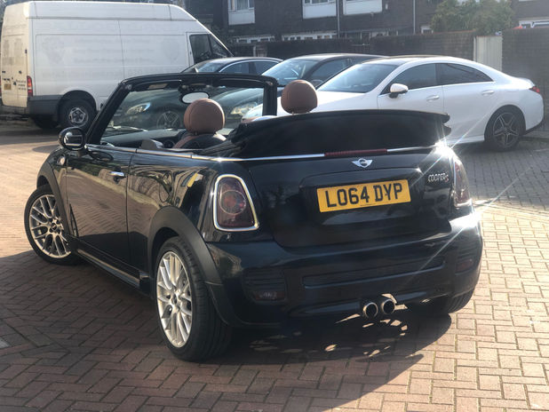 An elegant mini convertible Cooper S 1.6 automatic. comes with full service history and one former keeper. Finished in a midnight black metallic co-ordinated with black fabric hood and sumptuous brown lounge leather. Top of the range spec which includes, Full lounge leather, Heated front seats, multifunction steering wheel with gearshift paddles. Ambient interior light pack with an option to change colours and many more. 6 months free warranty with an option to extend, free deliver subject to distance. Part exchange welcome, contact us for more information and to book a viewing.